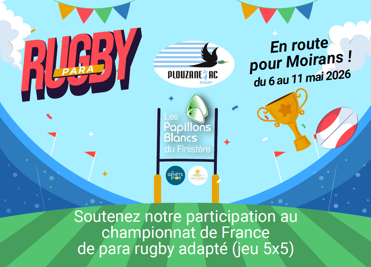 Seule représentant la Bretagne, la section « Adapte Ton PAC » du PLOUZANE AC RUGBY se mobilise pour envoyer tous ses licenciés en situation de handicap mental, psychique avec parfois des troubles associés, au championnat de France de para rugby adapté (jeu 5×5) du mercredi 6 mai au lundi 11 mai à Moirans (Isère).