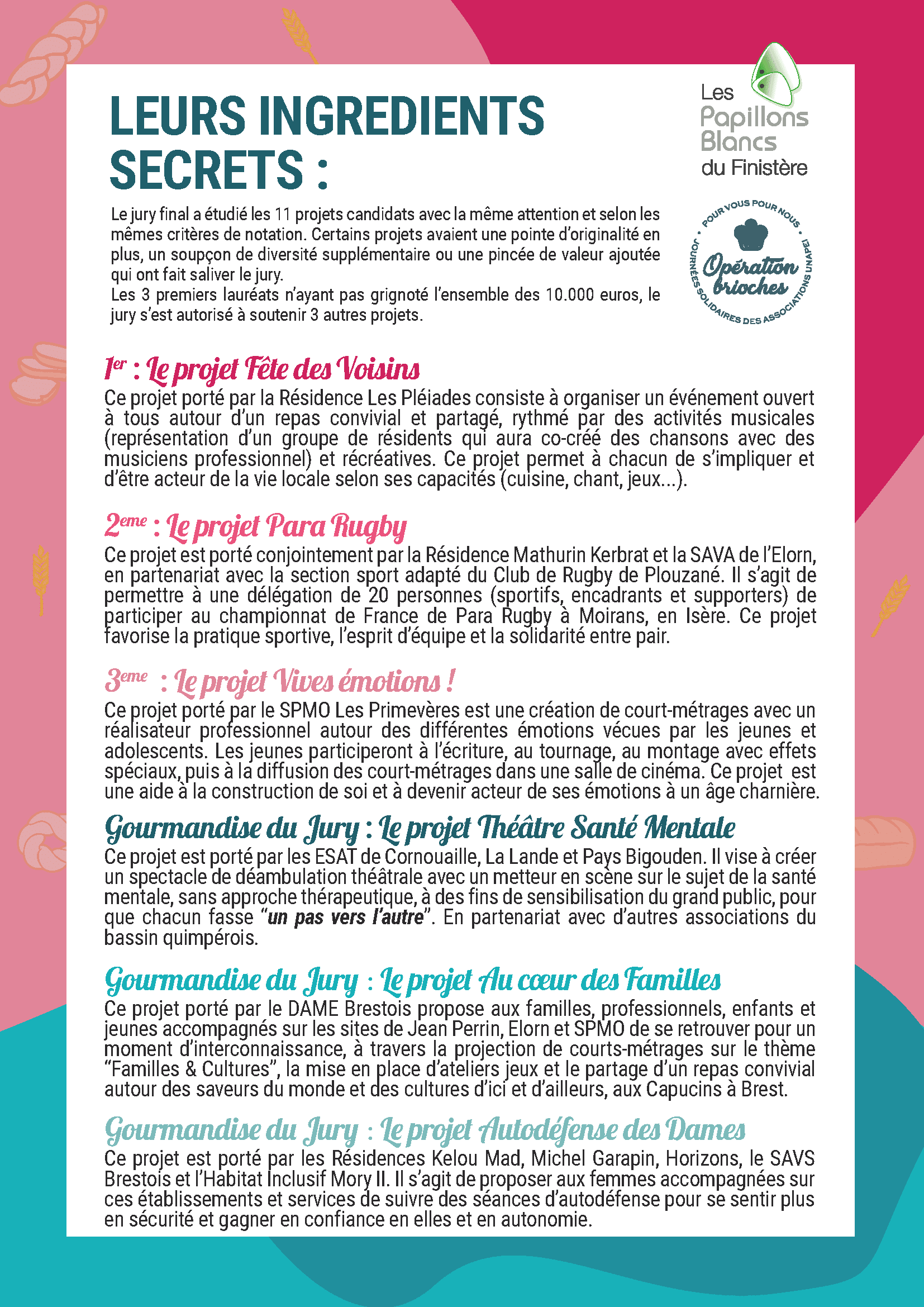 Ces financements sont possibles grâce à la mobilisation des bénévoles, des partenaires, des professionnels, des personnes accompagnées lors de la semaine de vente des brioches. Encore merci à tous ceux qui ont œuvré en 2025 ! Nous espérons vous voir encore plus nombreux du 5 au 11 octobre 2026 pour la nouvelle Opération Brioches et ainsi continuer de voir pousser de beaux projets sur nos établissements !